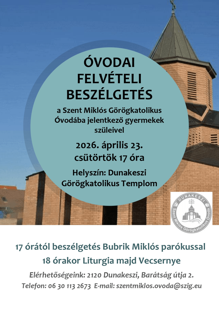Hozzászólás ehhez Szent Miklós Óvoda - Dunakeszi Óvodai felvételi beszélgetés Bejegyzés dátuma: 2026.04.10. Szent Miklós Óvoda - Dunakeszi által Megosztás: Share on X(Új ablakban nyílik meg) X Megosztás Facebookon(Új ablakban nyílik meg) Facebook Tetszik Betöltés... Szerző: Szent Miklós Óvoda - Dunakeszi View All Posts