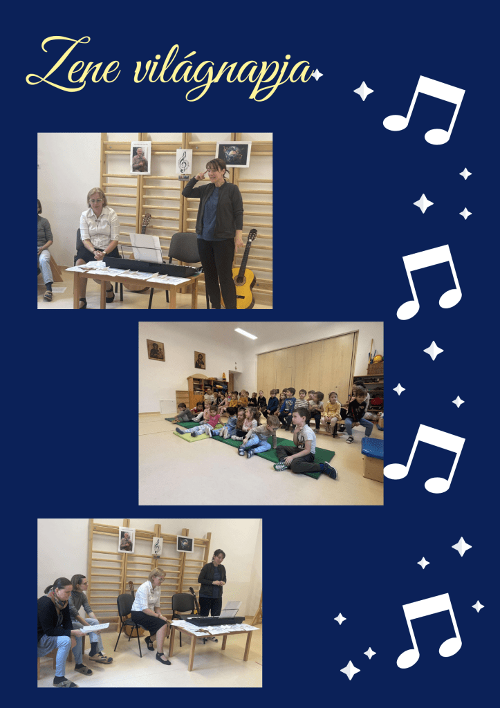 Óvodánkban idén is megünnepeltük a Zene Világnapját. A gyermekek és az óvónénik együtt énekeltek, zenéltek, és közösen örültek a muzsika varázsának. A vidám dallamok és a közös éneklés igazi örömteli hangulatot teremtettek az óvodában.