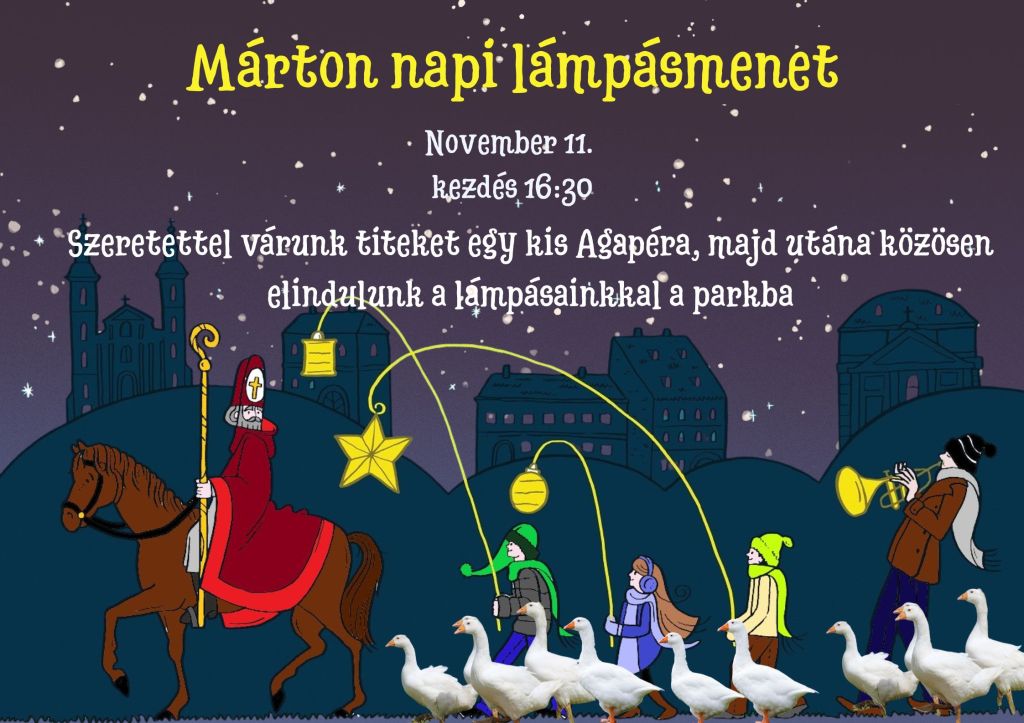 November 11-én Szent Mártonra emlékeztünk. A történet felelevenítése után libazsíros – lilahagymás kenyeret és süteményeket lakmároztunk az óvoda aulájában. Jóhangulatú lámpás felvonulásunk közben énekekkel hirdettük Szent Márton tetteit.