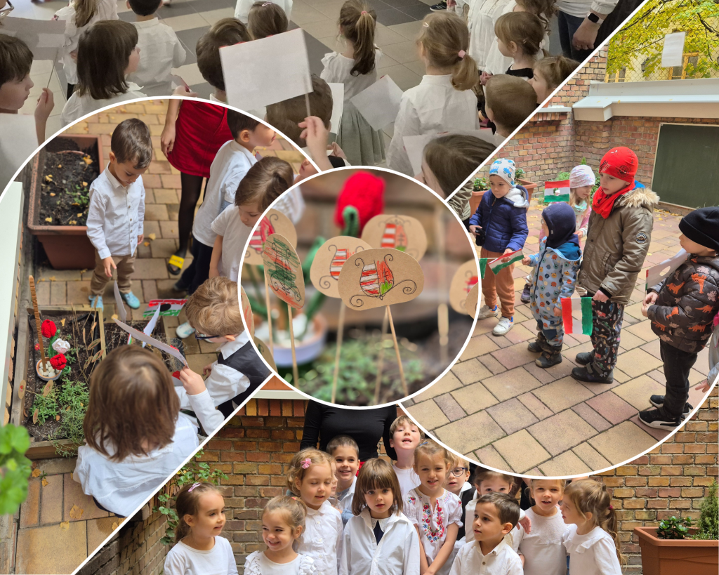 Az 1956-os forradalom és szabadságharc emlékére óvodásaink is készültek: nemzeti színű zászlókkal és alkotásokkal tisztelegtek a hősök előtt. Az elkészült munkákat a kis udvaron helyezték el, ezzel is kifejezve szeretetüket és tiszteletüket hazánk iránt.